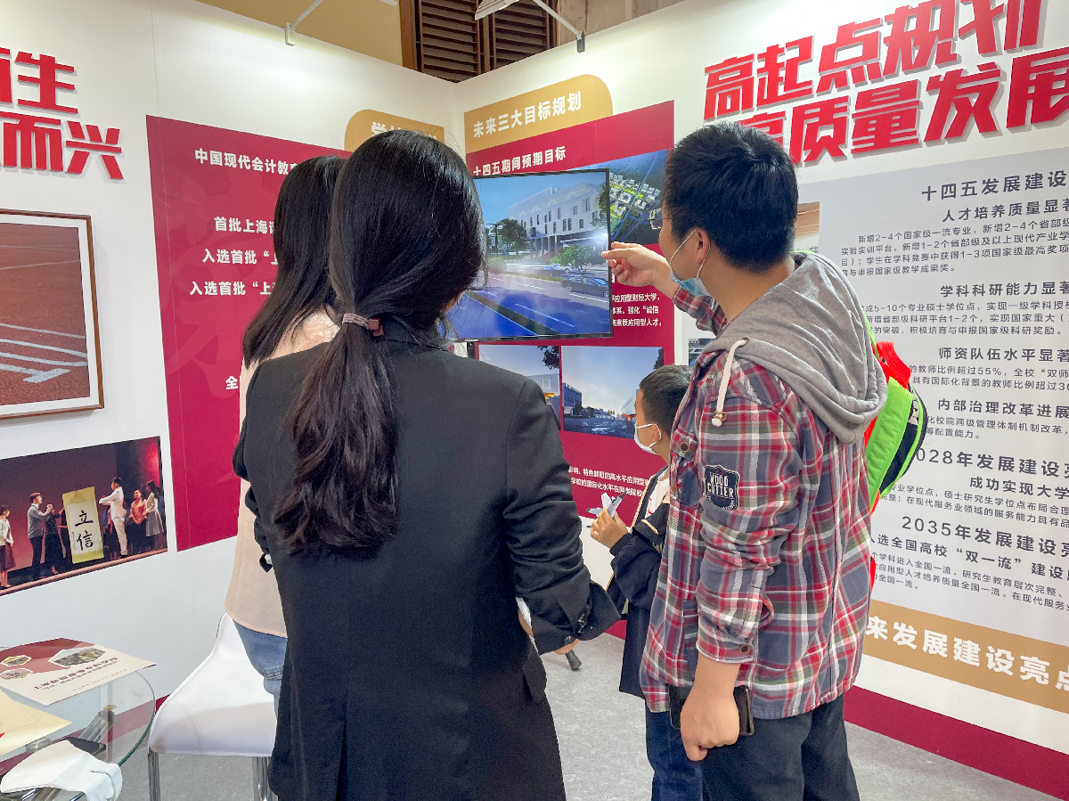 教博会上,我校通过展板、智能大屏、现场互动、线上展示等形式,以“应国运而生因会计金融而兴”“立足大时代服务大上海”“高起点规划高质量发展”三大板块生动展示了我校“十三五”建设成果和“十四五”规划亮点。为聚集人气和扩大宣传效果,学校专门为此次参展设计制作了宣传册、特色纸袋、精美互动小礼物等,受到学生家长追捧,纷纷爱不释手。