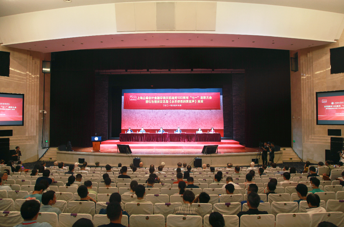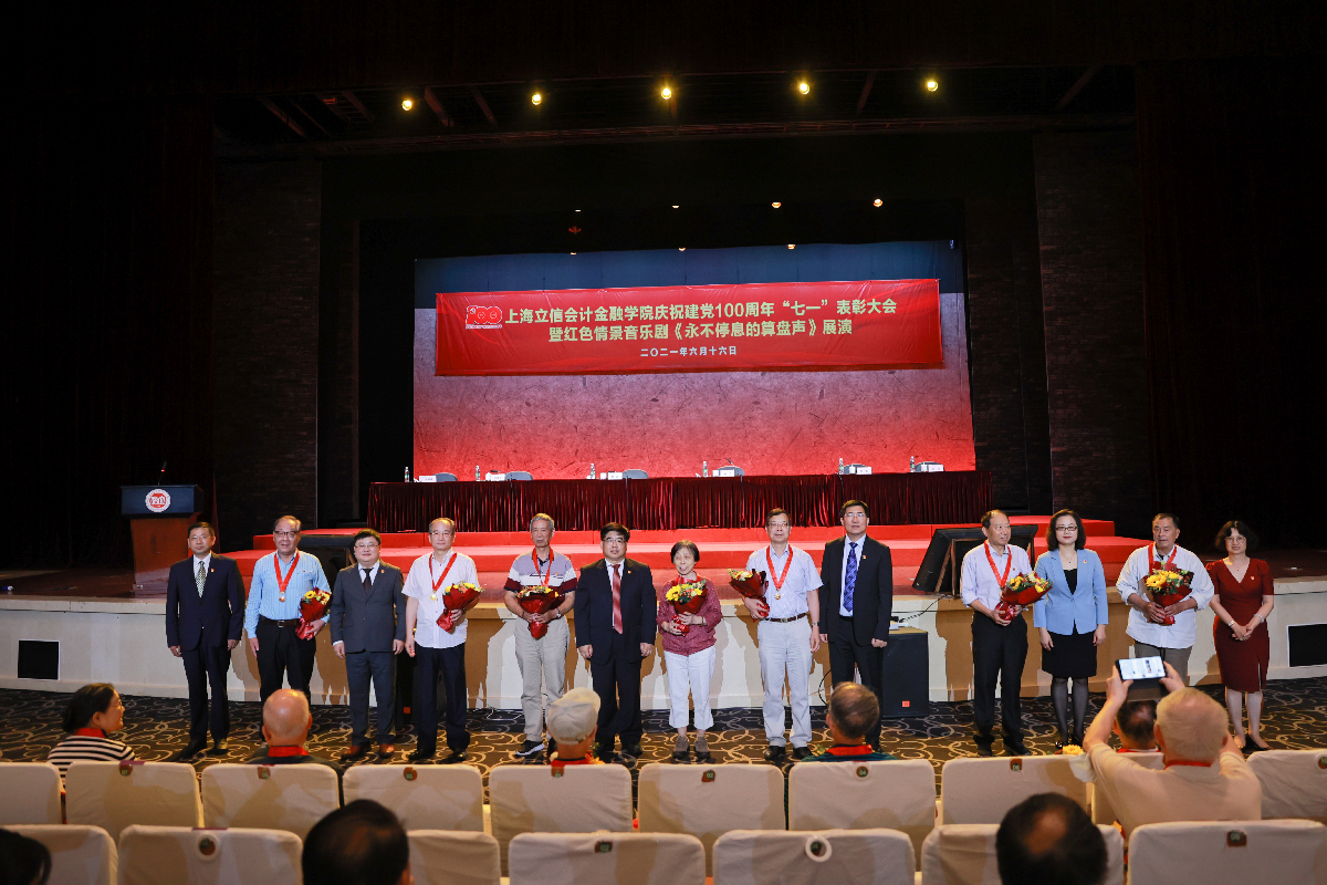 6月16日下午,我校在松江校区昭信堂举行“庆祝建党100周年‘七一’表彰大会暨红色情景剧《永不停息的算盘声》展演”活动。校领导班子成员、中层干部、组织员、党支部书记、教工和学生代表,以及被表彰的优秀个人和先进集体等参加活动。表彰大会由党委副书记、校长杨力主持。