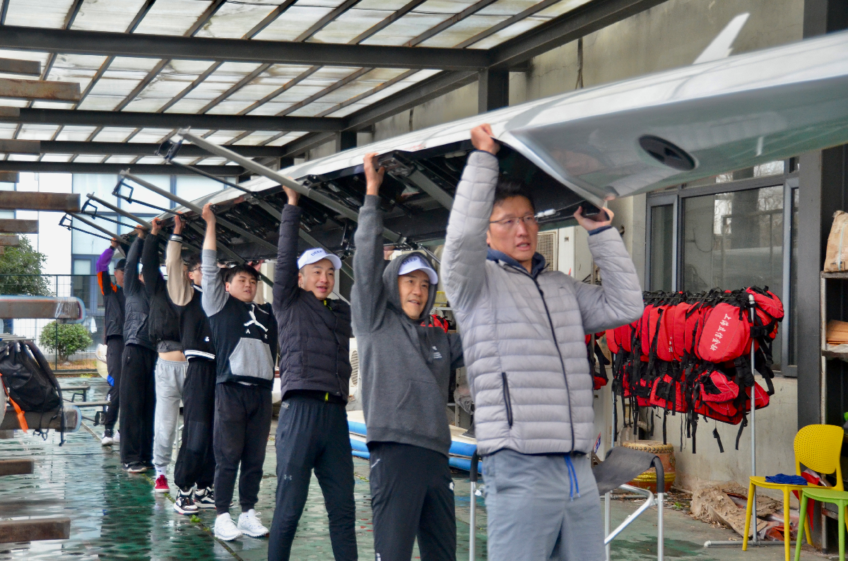 王石对学校的热情接待表示感谢,对学校高水平体育队伍建设和校园体育文化创新发展表示赞赏。王石一行还兴致勃勃地与赵荣善、立信赛艇队师生一起,冒着寒风挥桨劈波,在训练场地划艇切磋近一个半小时,为立信赛艇队打CALL!划艇结束后,来宾们还参观了击剑中心,观看了击剑队的训练和比赛。