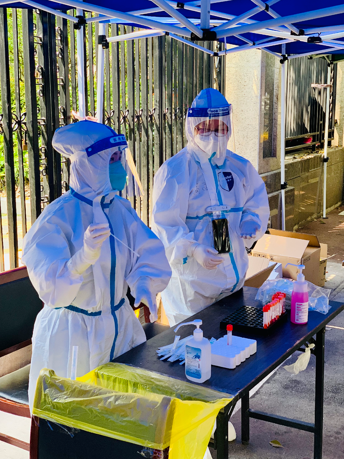 人事处高晓颖跟随居委参与核酸检测工作13次,协助转运防疫物资3次。基建处谢雅丽负责所在居委电话接待工作,每天她要回复几十个来访电话,解答居民出行、就医、返乡等问题。
