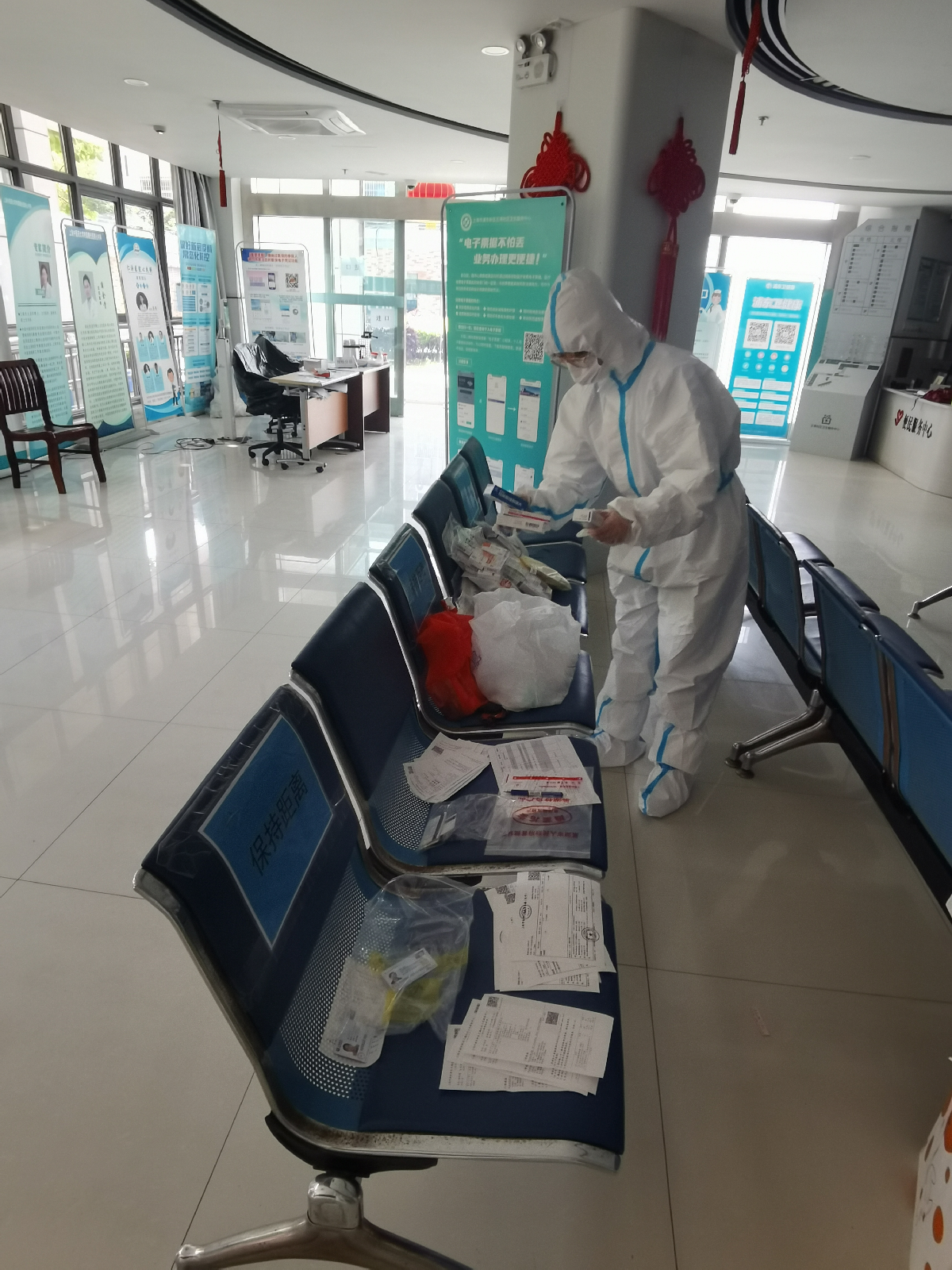 纪委综合办公室敖萱、财务处付博文在下沉社区主动担任起了楼栋小组组长工作,同时化身为“女汉子”,在门岗轮值帮忙运送物资,认真登记快递人员的抗原信息和联系方式,负责消杀物资并搬运至楼栋门口。