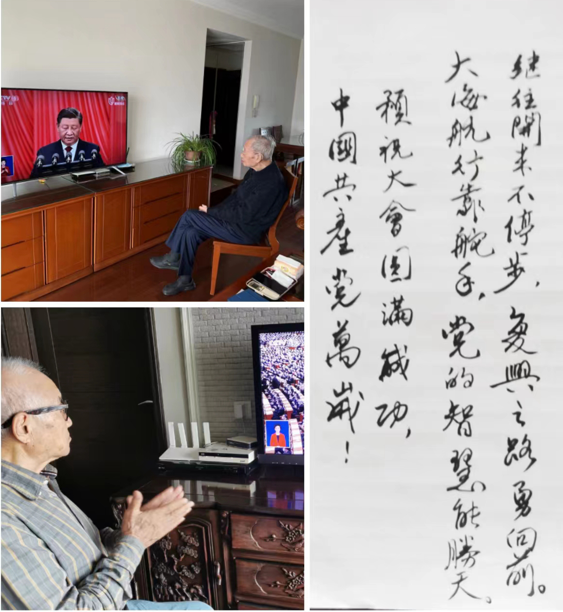 退休党员干部许海成以一首《七绝·金秋迎盛会》表达感想:“京城十月党旗悬,盛会从来担重肩。擘画蓝图谋伟业,践行宗旨谱新篇。”